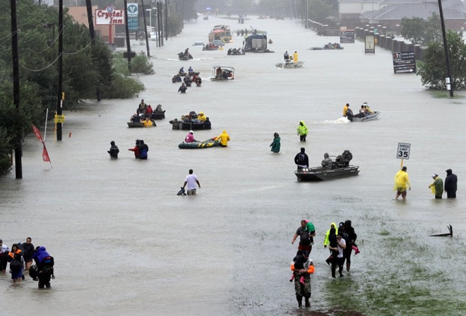 Harvey, cơn bão đổ bộ vùng đông nam bang Texas hôm 25-8, đã cướp đi sinh mạng của 60 người, theo Reuters. Thống đốc bang Texas Greg Abbott đã nâng con số ước tính thiệt hại về kinh tế mà bão Harvay gây ra, dao động từ 150 đến 180 tỷ USD. Ảnh: Time Maganize |