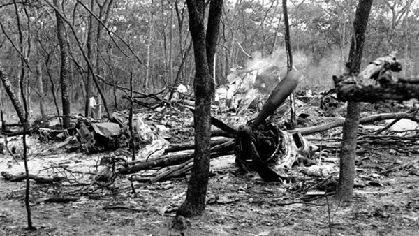 | Máy bay chở ông Dag Hammarskjold bị rơi xuống thị trấn Ndola. Ảnh: AP |