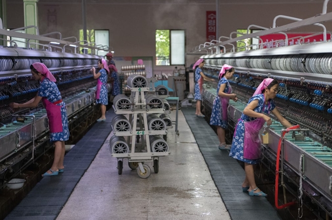 Nhiếp ảnh gia Carl Court đã dành nhiều thời gian ghi lại những hình ảnh lao động, làm việc và sinh hoạt của người dân Bình Nhưỡng, từ những cô công nhân đang miệt mài làm việc tại nhà máy lụa Kim Jong-suk |