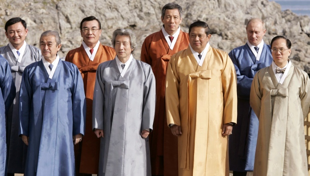 Hàn Quốc đăng cai APEC 2005 đã chọn hanbok - trang phục truyền thống của "xứ sở kim chi" dành tặng các lãnh đạo. Ảnh: Getty