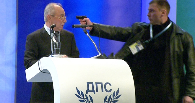 Chính trị gia Ahmed Dogan của Bulgaria đã bị một tay súng lao lên sân khấu và chĩa súng vào đầu khi ông đang có bài phát biểu trước nhiều người vào tháng 1-2013.