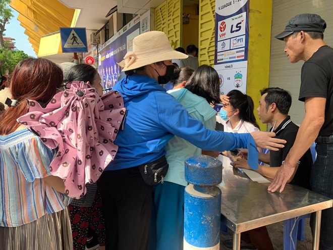 Ghi nhận của PV tại khu vực bán vé, số lượng người mua không lớn, tuy nhiên vẫn xảy ra tình trạng chen lấn, xô đẩy trong quá trình mua vé. Trong số người đến mua vé, ngoài người hâm mộ hai đội Hà Nội và HAGL còn có không ít dân phe vé tìm cách mua vé với số lượng lớn để bán ra ăn chênh lệch.