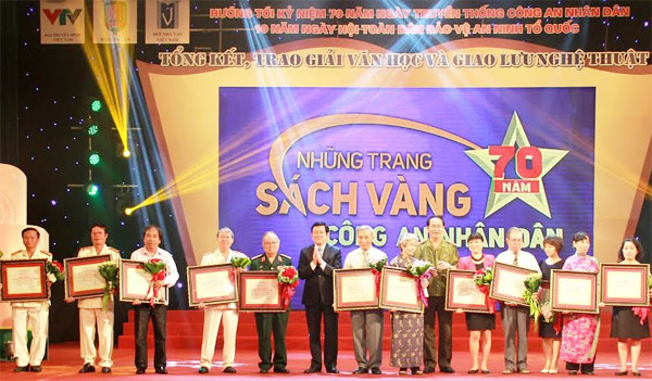 Chủ tịch nước Trương Tấn Sang, Bộ trưởng Bộ Công an Trần Đại Quang trao Bằng khen cho các nhà văn và đại diện gia đình các nhà văn có những trang viết xuất sắc về đề tài lực lượng Công an.
