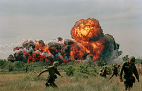 | Khói lửa bốc lên từ một cuộc tấn công bằng bom Napalm gần nơi quân Mỹ tuần tra năm 1966. |