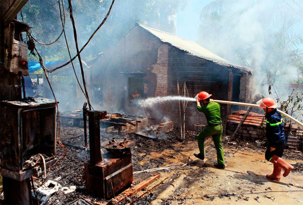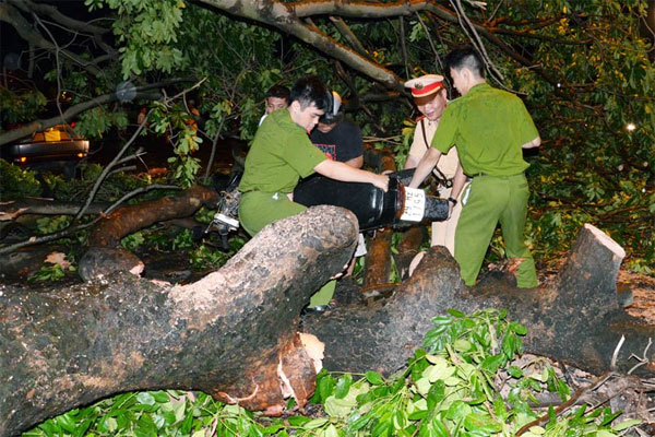 | Công an phường Chương Dương tích cực sơ tán dân chống bão. |