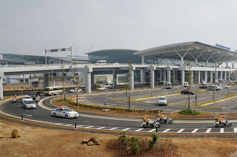 | Cảnh sát dẫn đoàn tại sân bay Nội Bài. |