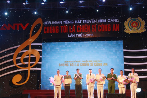 | Trung tướng Bùi Bá Định – Phó tổng cục trưởng Tổng cục chính trị CAND trao giải A cho 3 tiết mục đơn ca và 1 tiết mục tốp ca. |