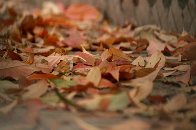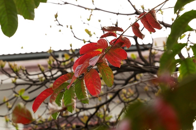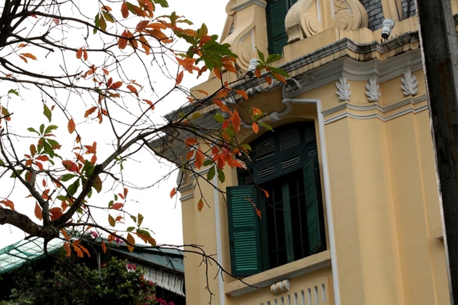 | Từ ban công một ngôi nhà cổ ngắm những cành cây khẳng khiu, nhìn những chiếc lá đỏ thỉnh thoảng lìa cành đánh dấu thời khắc chuyển mùa của thời tiết. |