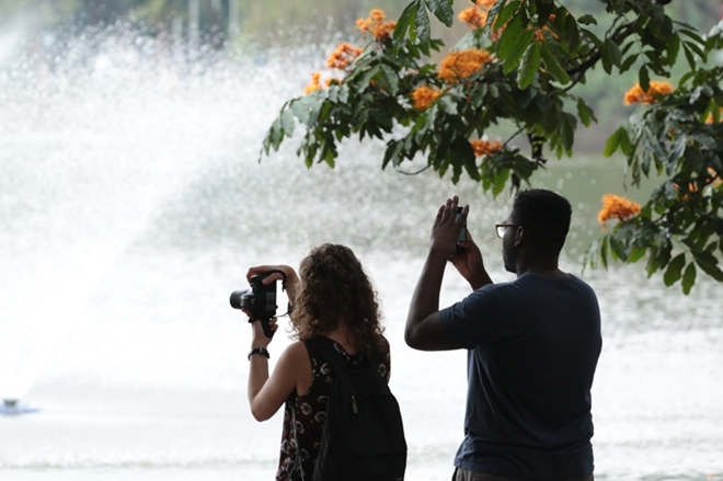 | Những vị khách nước ngoài cũng khó cầm lòng trước vẻ đẹp của Hà Nội vào thời điểm này. |