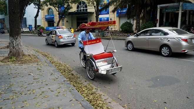 | Chầm chậm lướt qua những con phố ngắm khung cảnh thủ đô những ngày này cũng là một thú vui. |