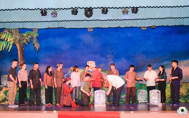 Hướng đến kỷ niệm 43 năm Ngày giải phóng hoàn toàn Miền Nam thống nhất đất nước (30/4/1975 – 30/4/2018), ngày 22-4, tại Trường Đại học ANND, Đoàn kịch nói CAND đã biểu diễn vở kịch “Gặp lại người đã chết”.
