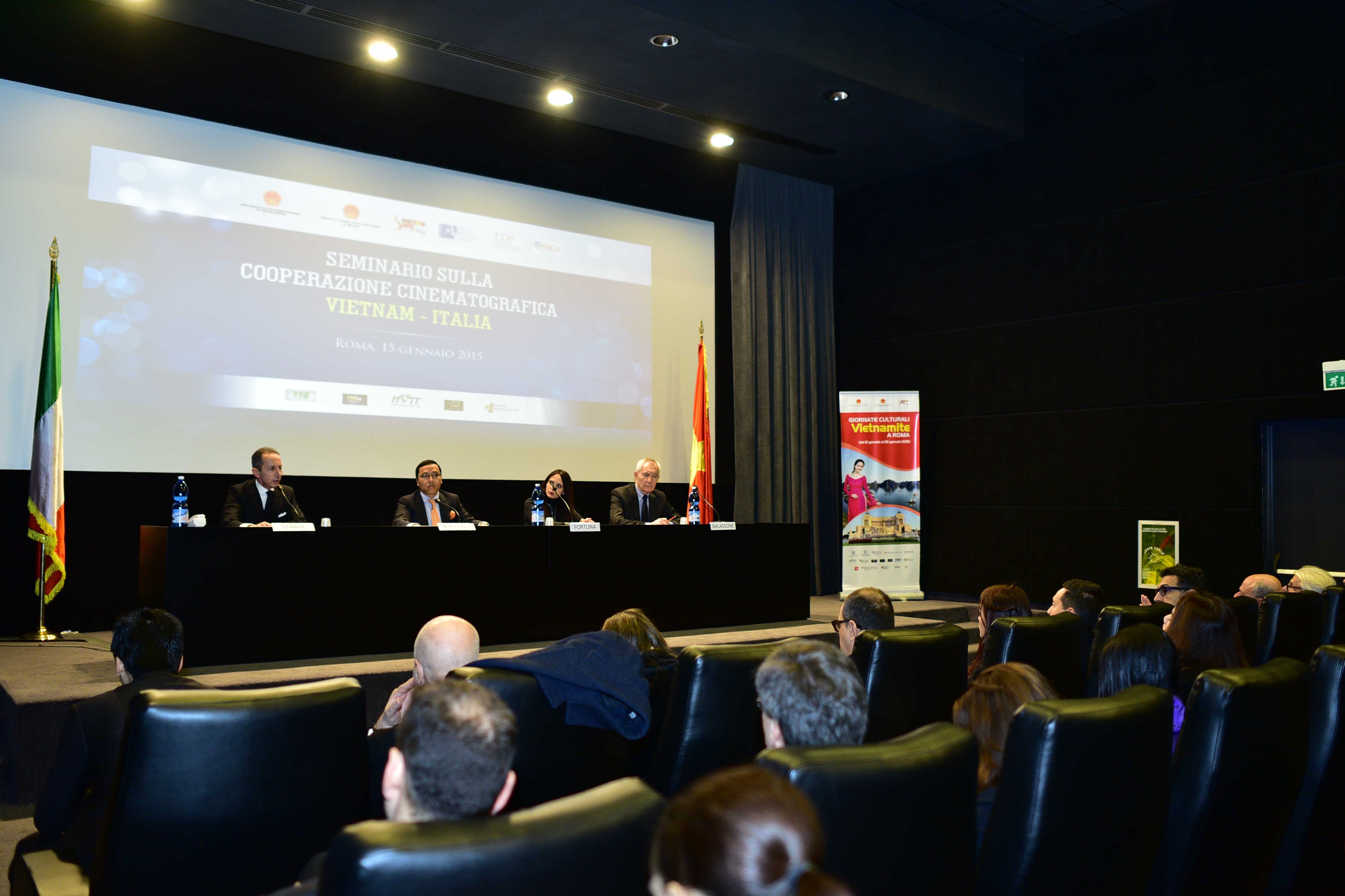 Trước đó, vào sáng 15.1, trong Hội thảo “Hợp tác điện ảnh Việt Nam - Italy” được tổ chức tại Viện phim Roma, với sự tham dự của nhiều gương mặt điện ảnh của Italy như bà Fabia Bettini, giám đốc điều phối hãng, Đại diện quỹ tài trợ điện ảnh Anica của chính phủ Italy cùng rất nhiều những diễn viên, nhà sản xuất phimcủa Italy. Những vấn đề được các nhà làm phim Italy đặc biệt quan tâm là thị hiếu khán giả, thông điệp của tác phẩm và những cách thức thu hút đầu tư của điện ảnh Việt Nam. |