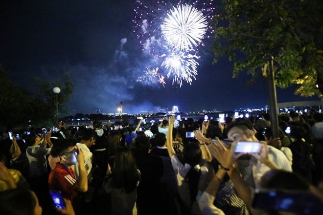 | Người dân hào hứng và mãn nhãn với màn bắn pháo hoa trong ngày Quốc khánh 2-9 |
