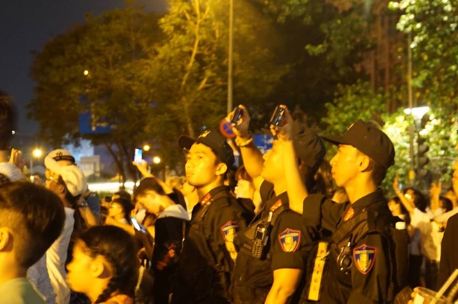 | Vừa giữ an ninh trật tự, các chiến sĩ CSCĐ cũng tranh thủ ghi lại những khoảnh khác lung linh của pháo hoa |