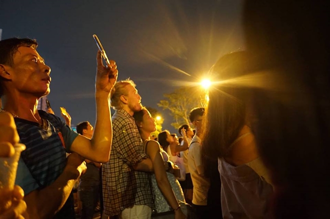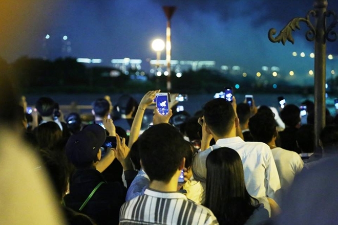| Nhiều người hào hứng dùng điện thoại ghi lại các khoảng khắc đẹp |