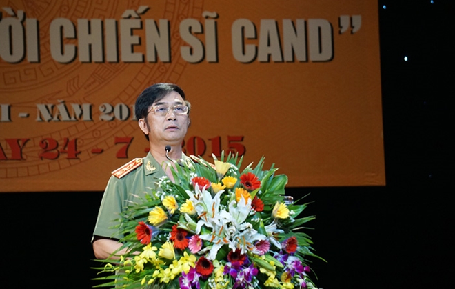 Thượng tướng Đặng Văn Hiếu, Ủy viên Trung ương Đảng, Thứ trưởng Thường trực Bộ Công an phát biểu tổng kết liên hoan.