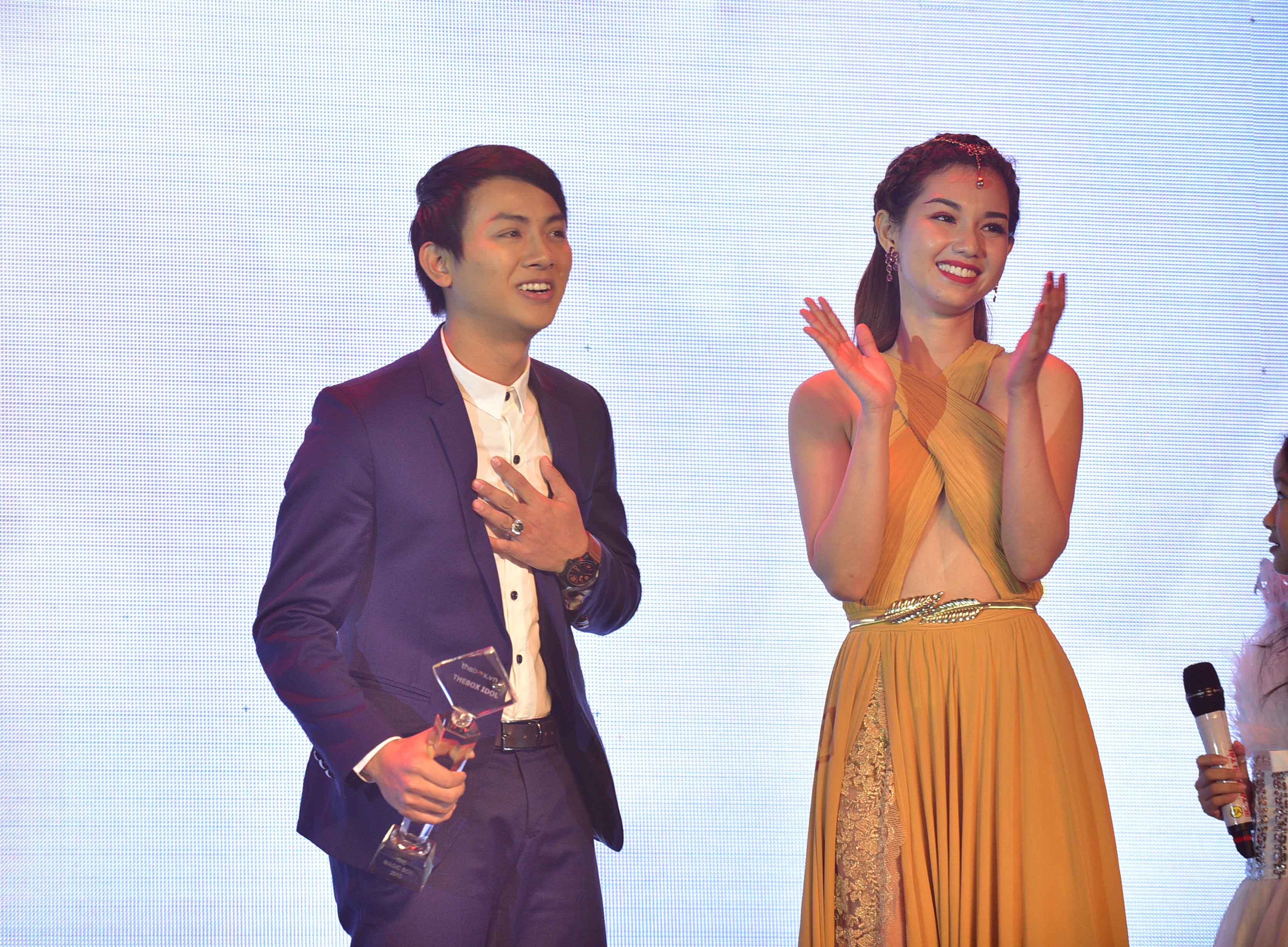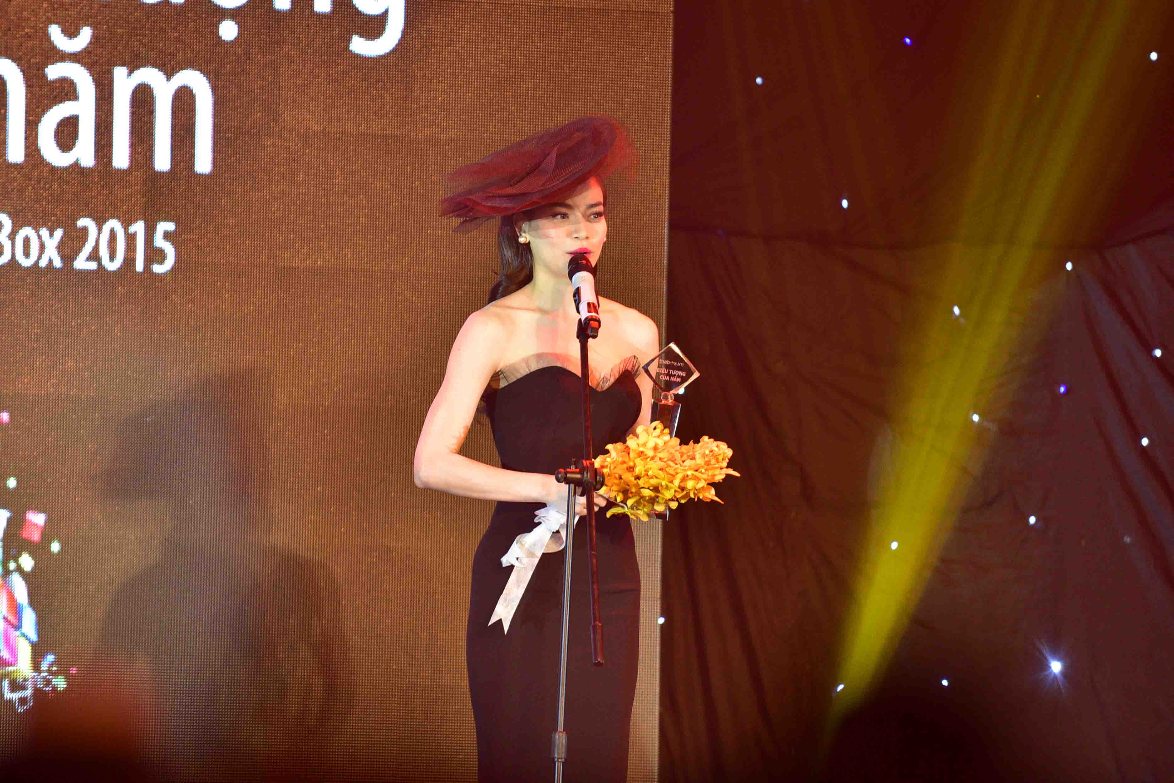 Cũng tại giải thưởng lần này, Hồ Ngọc Hà được vinh danh biểu tượng nghệ thuật của năm, Hoài Lâm đoạt giải thần tượng của giới trẻ, La Thăng nhận giải nhóm nhạc nam xuất sắc, Bee.T nhận giải nhóm nhạc nữ xuất sắc, Sơn Tùng nhận giải nam ca sỹ trẻ xuất sắc của năm, Đông Nhi đoạt giải nữ ca sỹ trẻ xuất sắc của năm, Lâm Vinh Hải nhận giải Vũ công xuất sắc, nhạc sỹ Phương Uyên nhận giải thành tựu của năm. Ảnh: Hồ Ngọc Hà nhận giải "Biểu tượng nghệ thuật của năm" |