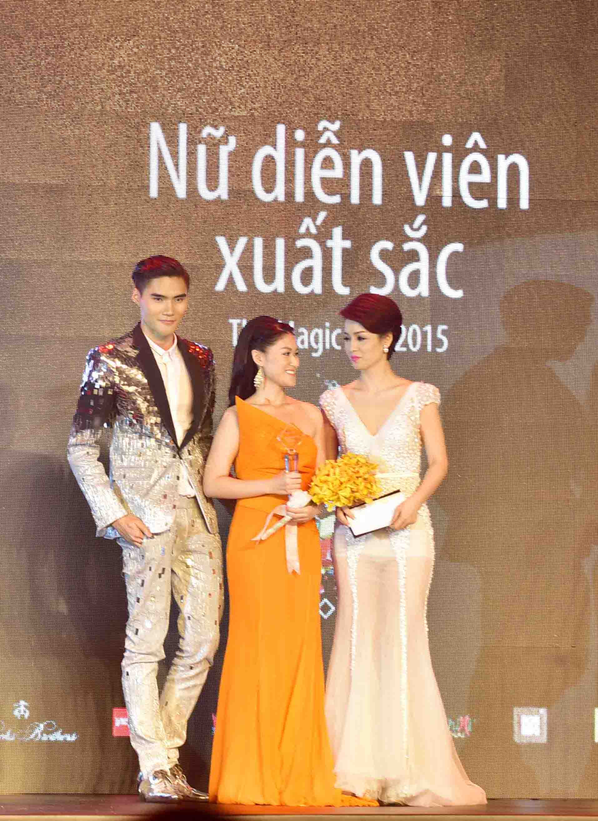 | Ngọc Thanh Tâm nhận giải "Nữ diễn viên xuất sắc nhất" cho vai diễn Linh trong phim "Hiệp sĩ mù" của đạo diễn Lưu Huỳnh. |