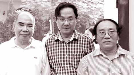 | Nhà văn Châu La Việt và các nhà thơ Hồng Thanh Quang, Trần Đăng Khoa (từ trái qua). |