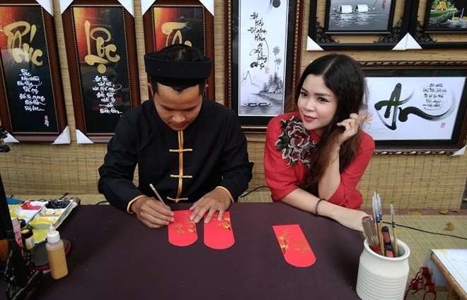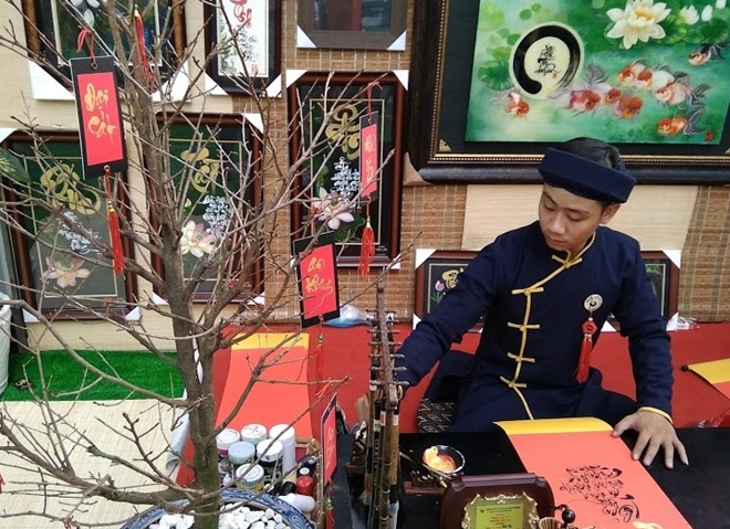 | Các ông đồ trẻ đã chuẩn bị sẵn sàng cho những ngày Tết |