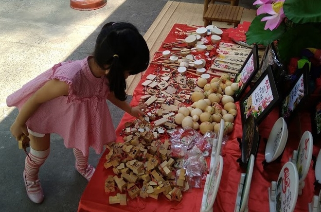 | Thích thú khi cùng ba mẹ đến phố ông đồ |