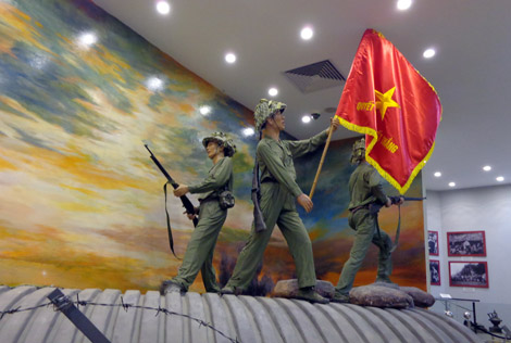 | Sự kiện cắm cờ chiến thắng trên nóc hầm tướng De Castri được tái hiện tại bảo tàng. |