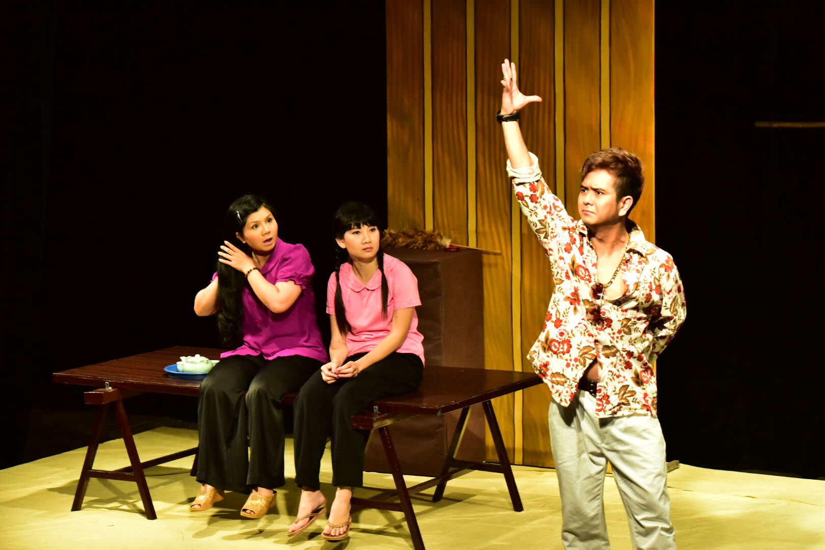 | Diễn viên Tú Sương lần đầu lên sân khấu kịch nói đã gây xúc động mạnh với vai Thương, người chị cả hết lòng vì đàn em nhỏ. |