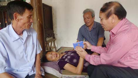 | Tặng sổ tiết kiệm cho cựu TNXP có hoàn cảnh khó khăn. |