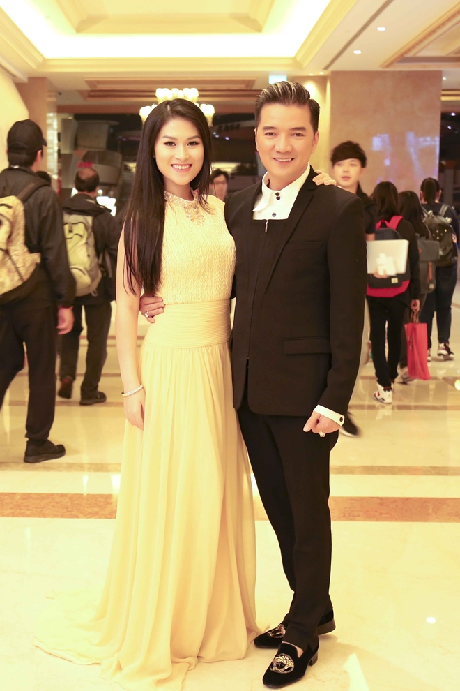Ở lần xuất hiện này, Đàm Vĩnh Hưng tiếp tục thể hiện đẳng cấp và sự lịch lãm khi mặc trang phục vest hàng hiệu kết hợp với những phụ kiện đắt tiền. Sánh đôi bên Mr Đàm, Ngọc Thanh Tâm gây được sự chú ý với vẻ ngoài xinh đẹp, dịu dàng cùng chiếc đầm vàng nổi bật. |