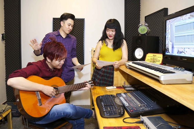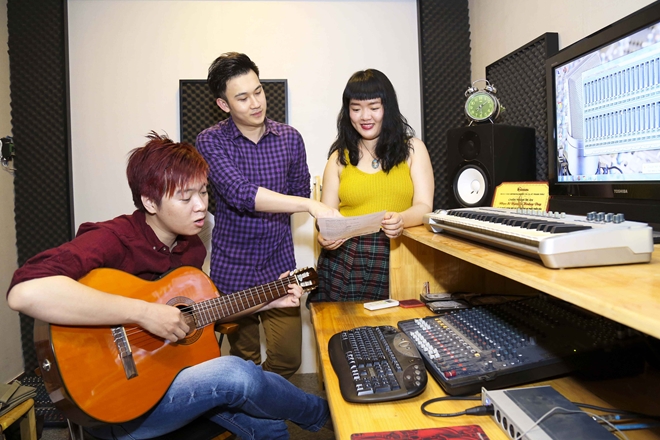 Do bận rộn với lịch diễn trong và ngoài nước, Dương Triệu Vũ phải tranh thủ khoảng thời gian rảnh rỗi lúc đêm khuya để vào phòng thu. Ủng hộ sự tâm huyết của “đàn anh”, Phạm Toàn Thắng, Âu Bảo Ngân không ngại thức trắng đêm để cùng với Dương Triệu Vũ cho ra đời một sản phẩm ưng ý. |