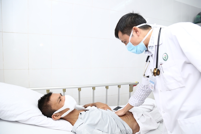| TS. Nguyễn Thế Cường đang khám cho bệnh nhân |