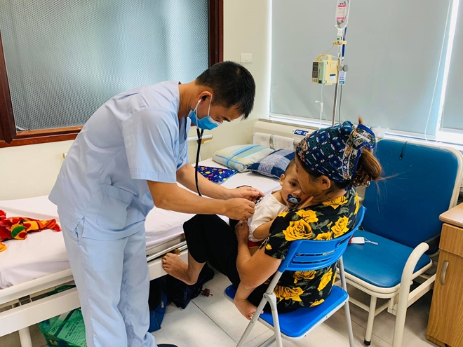 | Ths.BS Nguyễn Trọng Dũng đang khám cho cháu Đặng Hải Đ. |