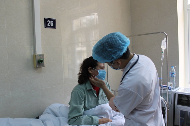 Nằm điều trị bên cạnh giường bệnh nhân A. là bệnh nhân Đ.T.V (63 tuổi, ở Đông Ngạc, quận Bắc Từ Liêm) cũng nhập viện do mắc quai bị từ 5 ngày trước. Bệnh nhân V. nhập viện trong tình trạng sưng đau góc hàm bên phải, sau đó lan sang bên trái.