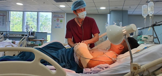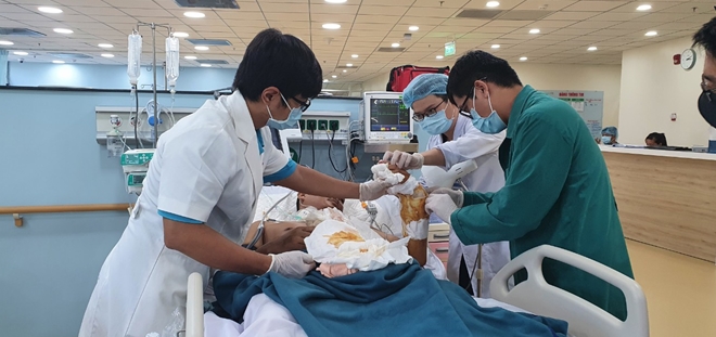 Các bác sĩ Bệnh viện Quân y 175 cho biết khoảng 15h40 phút cùng ngày, bệnh nhân được được đưa vào Viện Chấn thương chỉnh hình của Bệnh viện trong tình trạng vết thương đứt lìa cẳng tay trái. Tổn thương rất nặng.