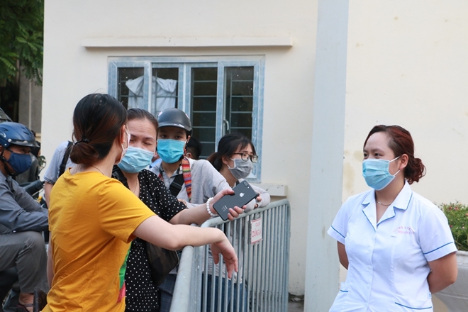 | Nhiều người nhà bệnh nhân đang điều trị tại cơ sở y tế này có mặt bên ngoài cổng bệnh viện vào chiều cùng ngày. |
