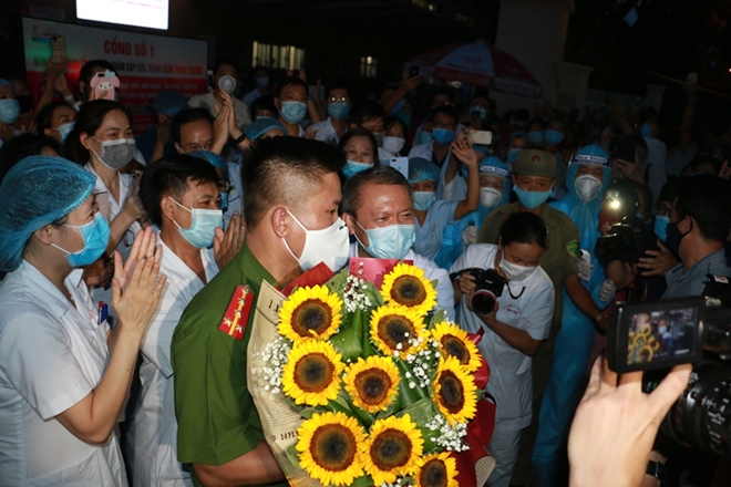 Đúng 18h30 hàng rào cách ly bên ngoài cổng bệnh viện E đã được gỡ bỏ trong tiếng vỗ tay của các nhân viên y tế cũng như đông đảo người nhà bệnh nhân vốn đã chờ ở ngoài trước đó từ nhiều giờ trước.
