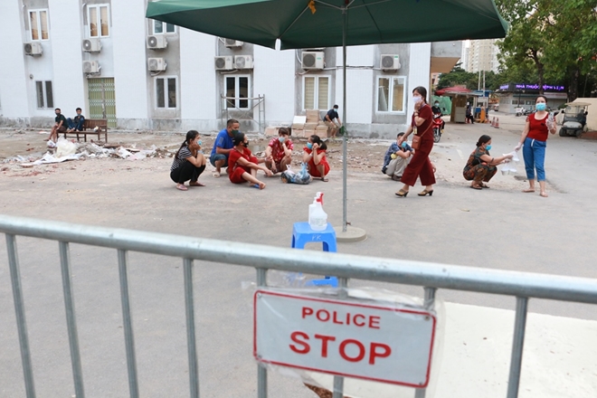 | Bên trong hàng rào cách ly cũng có nhiều thân nhân của bệnh nhân chờ đợi đến thời khắc bệnh viện được phong tỏa để ra ngoài. |