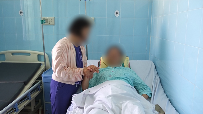 | Anh K được người thân chăm sóc tại BV Bình Dân sau ca mổ. |