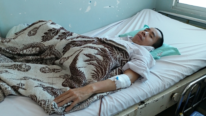 | Nguyễn Đức khi mới nhập viện Bình Dân vào tháng 3-2017 khi phát hiện thận có hiện tượng ứ nước, nhiễm trùng. |