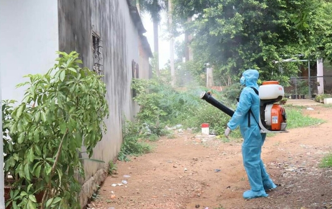 | Nhân viên y tế phun thuốc khử khuẩn khu vực liên quan đến dịch bệnh. |