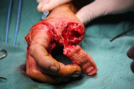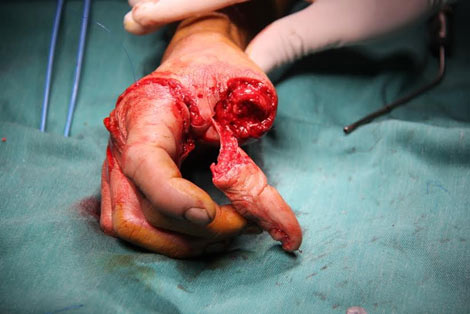 Qua trường hợp này, những nạn nhân nào không may bị đứt lìa ngón,tay, chân thì hãy bình tĩnh sơ cứu kịp thời tại cơ sở rồi chuyển khẩn trương bệnh nhân đến bệnh viện. Nếu các bộ phận tay, chân, ngón đứt lìa khỏi cơ thể có thể cho vào thùng đá lạnh sát khuẩn.