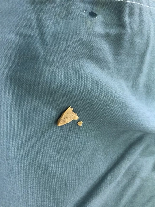 Mảnh xương nằm trong phế quản bệnh nhân T. 6 tháng, được các BS lấy ra. |