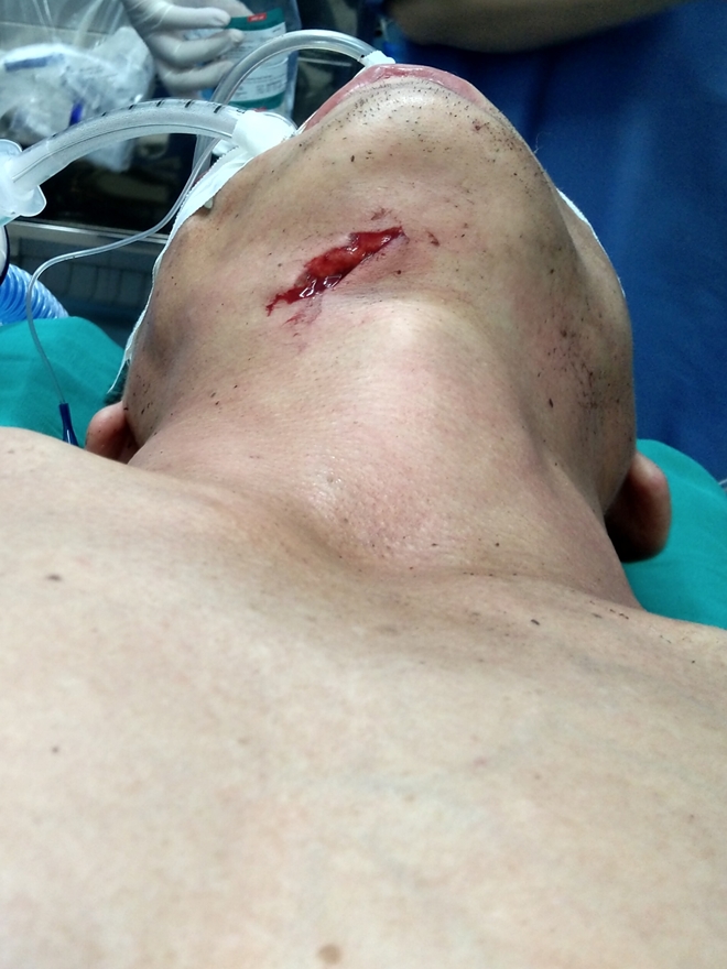 TS Vũ Ngọc Tú - Trung tâm Phẫu thuật Tim mạch và Lồng ngực, Bệnh viện Hữu nghị Việt Đức cho biết: Người bệnh được chẩn đoán vết thương phức tạp vùng cổ, do dị vật kim loại dài, xiên từ hầu họng vào trong miệng. Đây là vùng có rất nhiều cơ quan hệ trọng như đường thở (khí quản), đường ăn (thực quản), các mạch máu nuôi não (động mạch cảnh)... Rất may mắn là thanh sắt chưa trực tiếp gây tổn thương các thành phần này, nhưng lại nằm sát tất cả các cấu trúc đó.