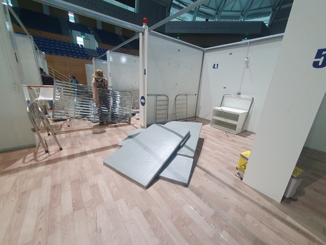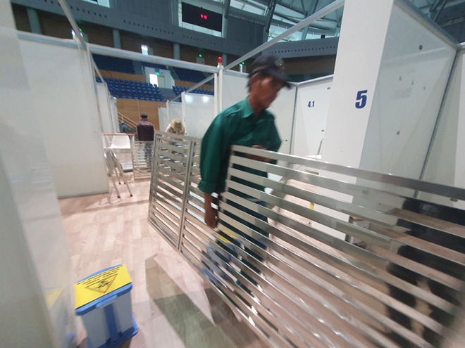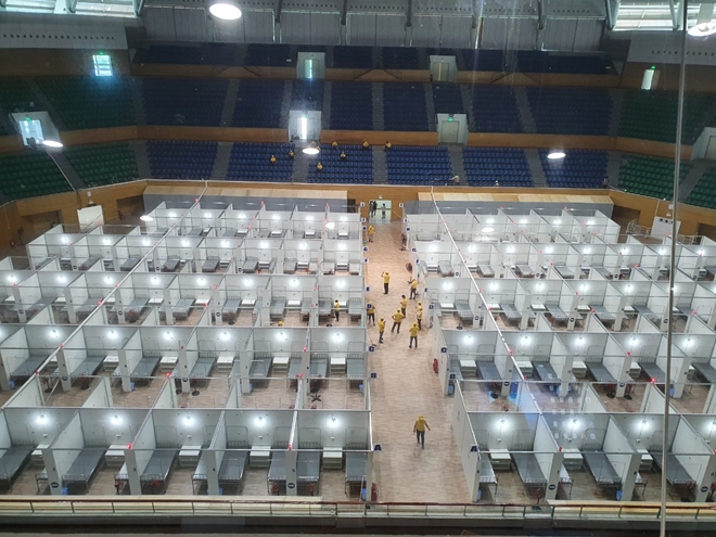 | Bệnh viện dã chiến Cung thể thao Tuyên Sơn TP Đà Nẵng được xây dựng thần tốc để phục vụ công tác thu dung, điều trị bệnh nhân COVID-19. |