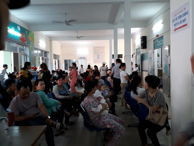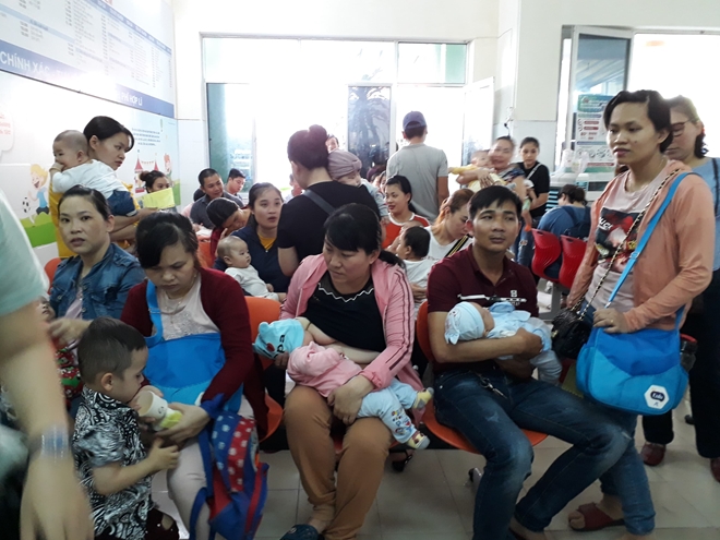 Trong những ngày vừa qua, đã không ít phụ huynh tuy đã đến từ sớm để xếp hàng, nhưng vẫn không còn chỗ ngồi phải chen chúc, bồng bế con cái trong không gian chật chội, đông đúc…