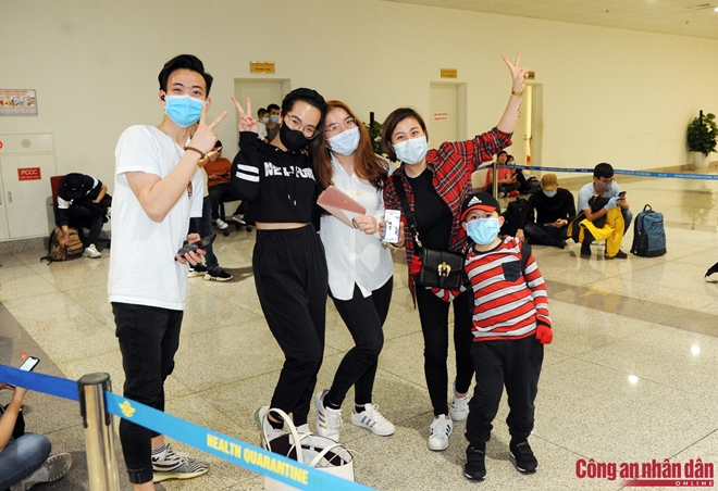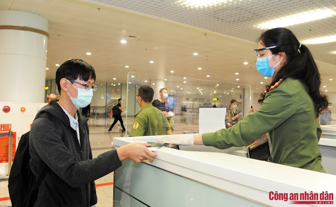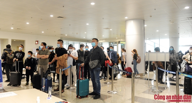 | Ngoài làm các thủ tục nhập cảnh cho gần 1.000 người Việt Nam trở về nước, các CBCS Công an CKCHKQT Nội Bài vẫn tiến hành làm các thủ tục cho các hành khách đủ tiêu chuẩn y tế đến Việt Nam. |
