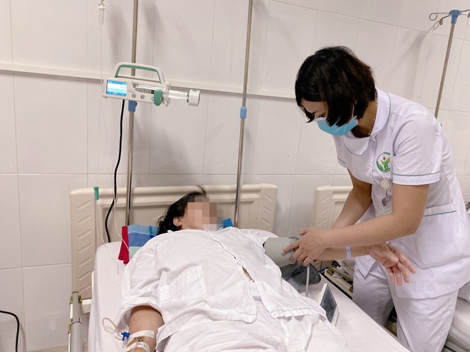 | Chị L được chăm sóc sau điều trị bằng thuốc tiêu khuyết khối |