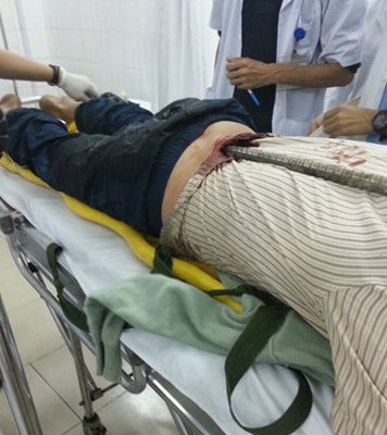 | Anh N.V.H nhập viện trong tình trạng thanh sắt đâm xuyên vùng thắt lưng . |