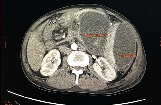 Ê kíp nội soi phát hiện khối to chèn ép toàn bộ thân vị phía bờ cong lớn. Các bác sĩ đã tiến hành chọc nang ở thân vị giữa và đặt 1 stent pigtails, nhiều dịch đen chảy ra. Sau dẫn lưu 30 phút bệnh nhân tỉnh, dạ dày ra 500ml dịch đen, bệnh nhân khỏe nhiều, hết khó thở, bụng mềm.