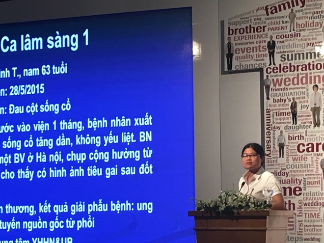 TS. Phạm Thị Cẩm Phương, Phó Giám đốc Trung tâm y học hạt nhân và ung bướu -BV Bạch Mai báo cáo nghiên cứu về điều trị erlotinib